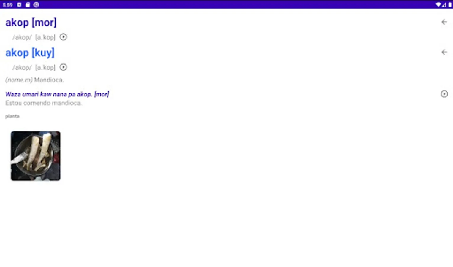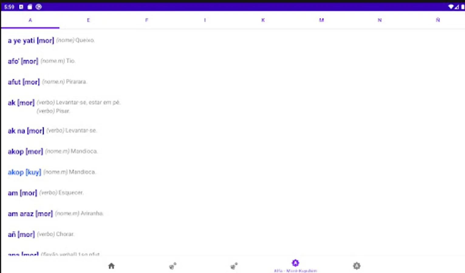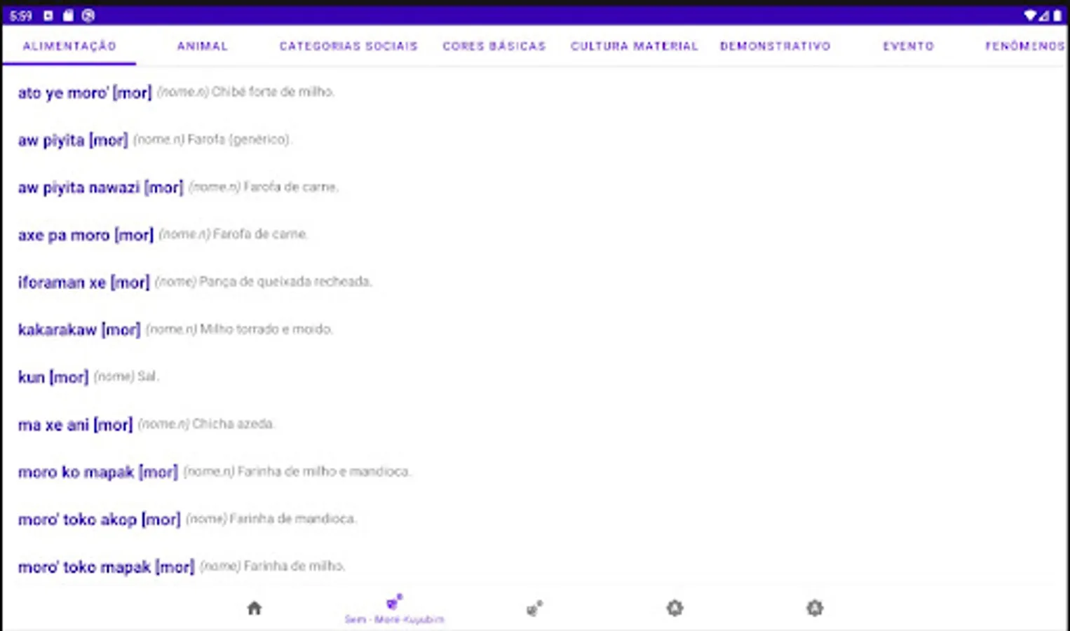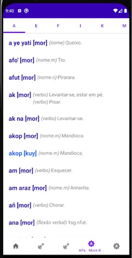 Mobile and tablet version of the Moré-Kuyubim Multimedia Dictionary - Portuguese / Portuguese - Moré-Kuyubim produced by indigenous and non-indigenous researchers within the scope of the Indigenous Languages Documentation Project (ProDoclin) of the Museu do Índio/Funai/UNESCO. This is a product of Portal Japiim, a collaborative digital platform for the elaboration, edition and publication of multimedia dictionaries of indigenous languages. Portal Japiim is an initiative of ProDoclin/Museu do Índio/Funai/UNESCO and also offers support tools for indigenous languages, such as keyboards for cell phones, tablets and computers specially designed for several indigenous languages spoken and written in Brazil.