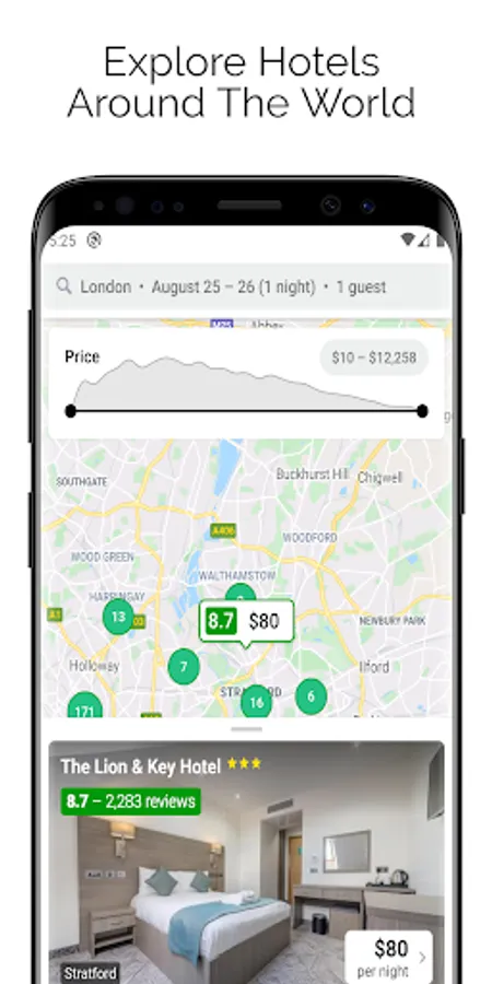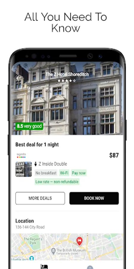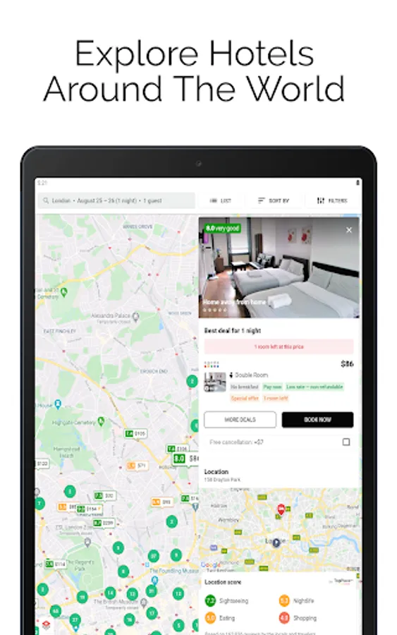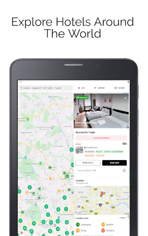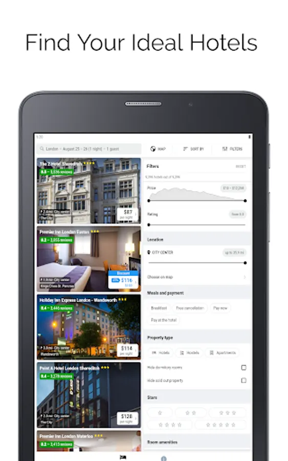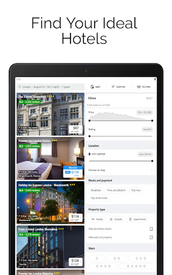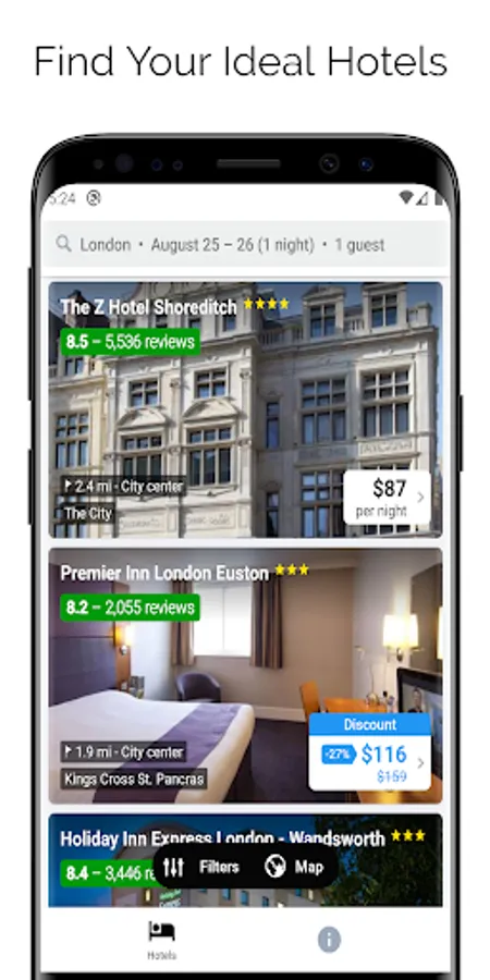 Our app provides cheap hotels booking all around the world. you can book any type of hotel like last minute hotels, budget hotels, lowcost hotels, ergonomic hotels, business hotels, etc. top last minute deals are available for your last minute reservation. The best price guaranteed and transparent pricing policy is available. This app provides currency of your choice for search results. Customer ratings and user reviews help you to know your hotel better before booking. No matter whatever your budget, even at the very last minute our app will find you a suitable hotel room.