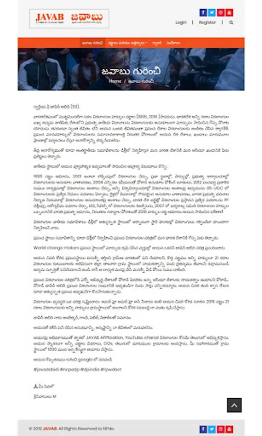 This JAVAB APP dedicated to disabled people provide updated information of United Nation, National and Telugu States level.