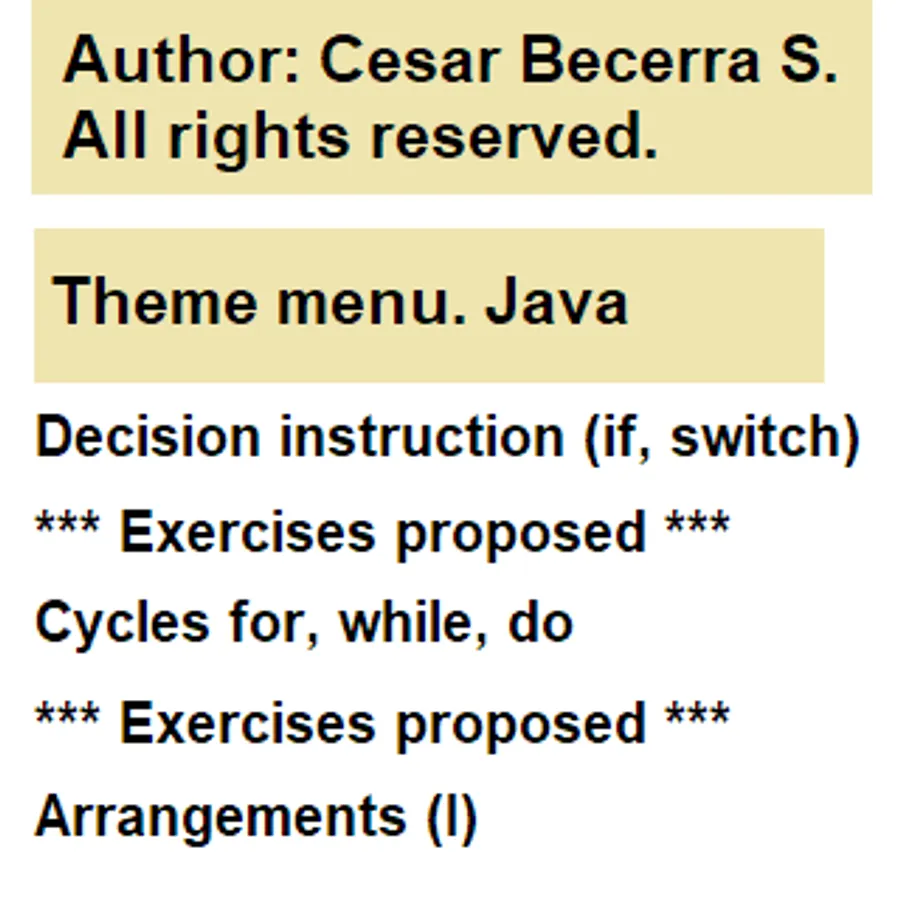 Additionally, exercises on each topic are proposed for the student to develop and practice the Java language.