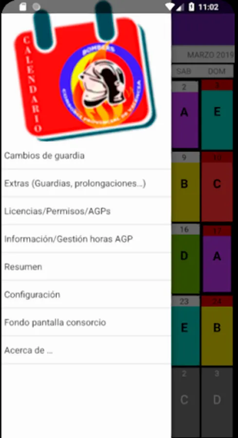 Application shows the calendar of all shifts firefighters Fire Consortium Valencia.También can manage your changes, licenses, permits and extra guards.
