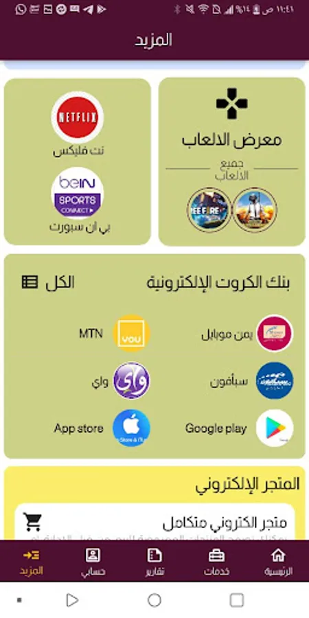 - Electronic payment services divided according to various tabs