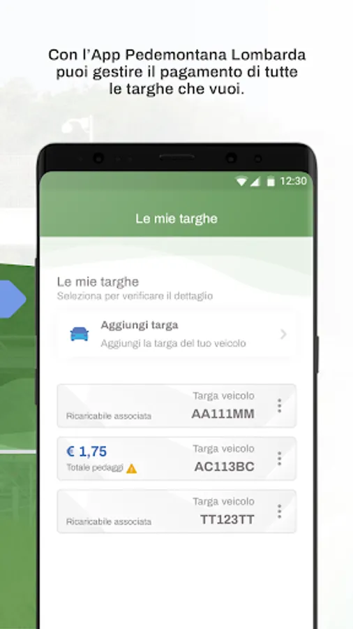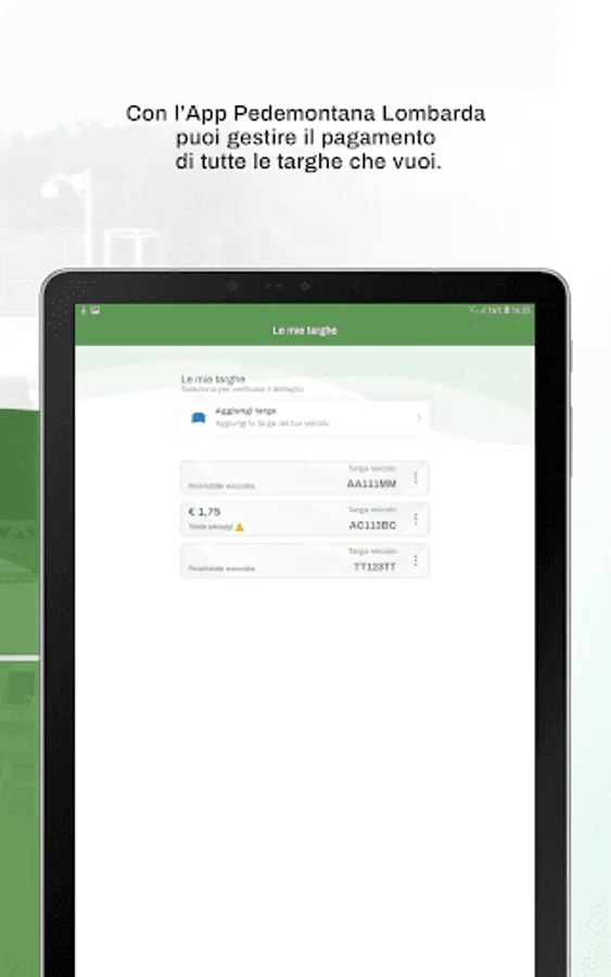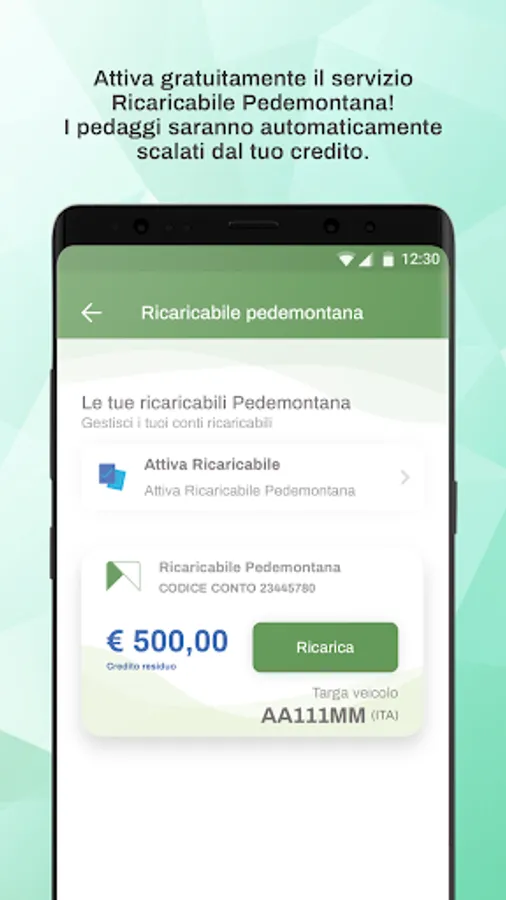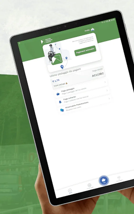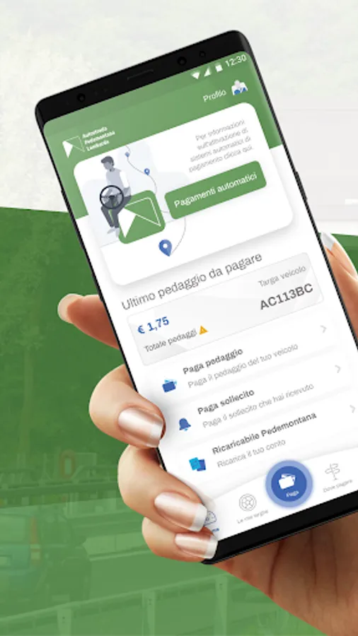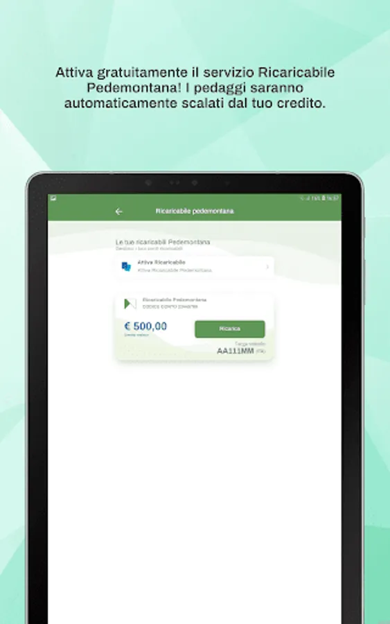 Now you can manage your tolls, payment prompts, and charge the electronic purse of your "Rechargeable Pedemontana" directly from your smartphone or tablet.
