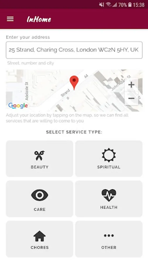 Adjust your location by tapping the map, so we can find all services that are willing to come to you.