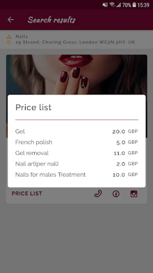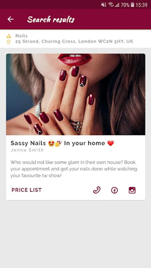 Access social networks, telephone number, price list, images and description of any service of your interest.