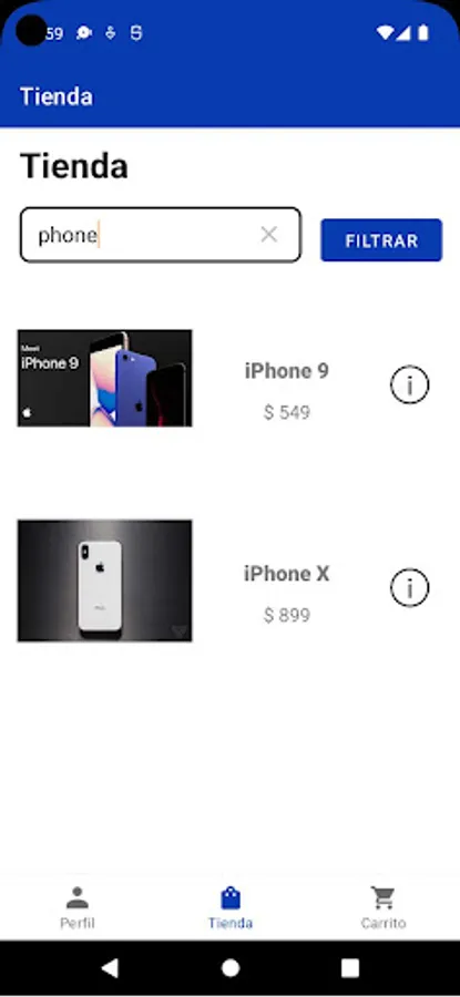 Aplicación de tienda para comprar productos, cuenta con administración de perfil y tienda para seleccionar productos.