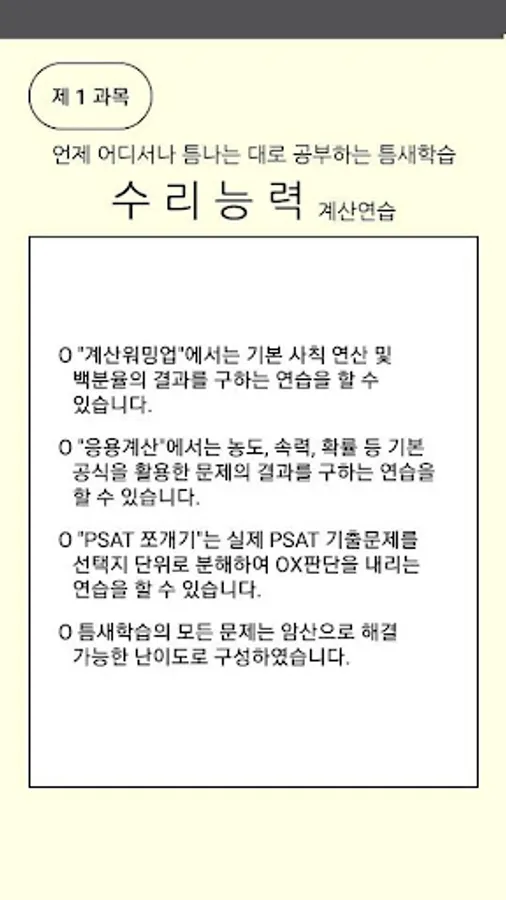 ○ 틈새학습의 모든 문제는 암산으로 해결 가능한 난이도로 구성하였습니다.