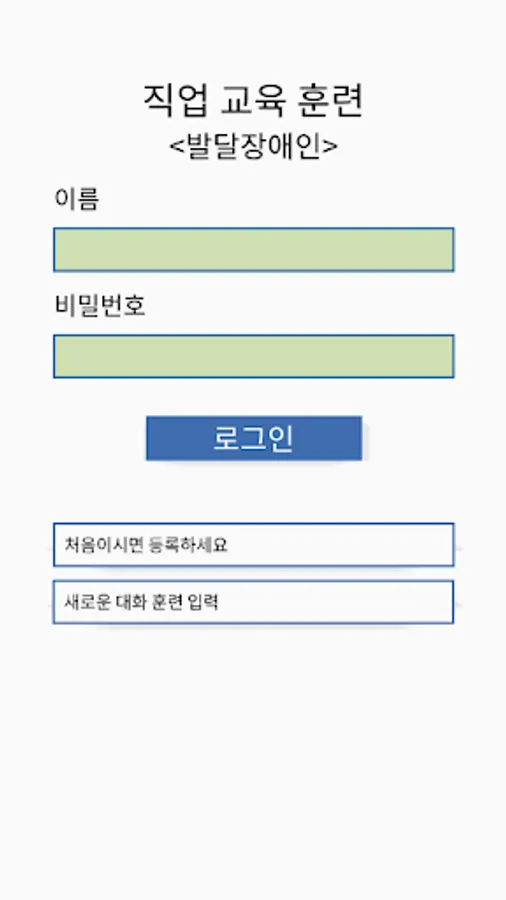 -발달장애인들이 비장애인들과 접촉하는 여러 가지 상황과 직업 환경을 모의 훈련(Simulation)할 수 있는 음성 챗봇이다. 여러 가지 상황과 직업 환경 시나리오를 만들어 발달 장애인들이 앱에서 대화하고 교육 받으며 직업 훈련을 할 수 있고 사회적응을 돕도록 하였다.