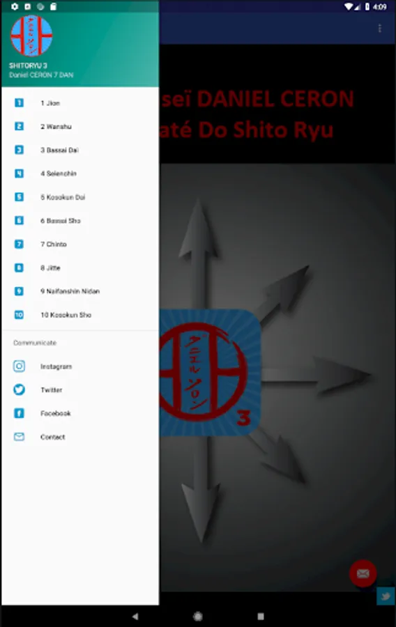 This application was designed by Daniel CERON, karate teacher Shito-Ryu 7th dan student of Master Hidetoshi NAKAHASHI, graduate DESCHI UCHI state of Master Mabuni. and developed by Jean-Claude BLOT, 1st DAN SHOTOKAN.