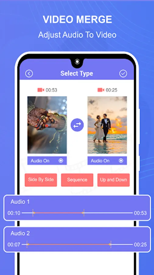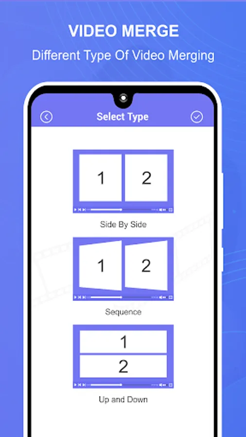 ✔ Easy mode selection i.e. Video Merge Side by Side, Video Merge Up and Down or Video Merge Sequentially.