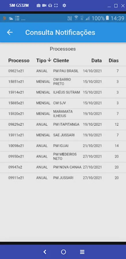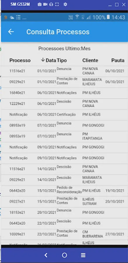 As well as showing the Processes and Notifications Released in the period of the City Halls.