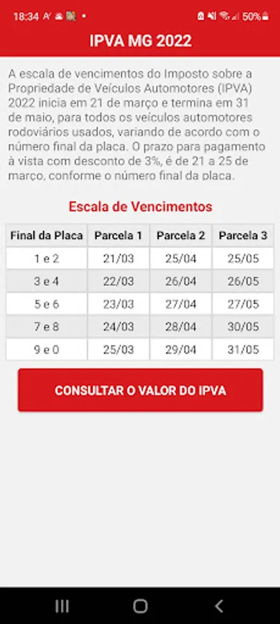 With this application you will be able to consult the values and due dates of ipva 2022 in MG.