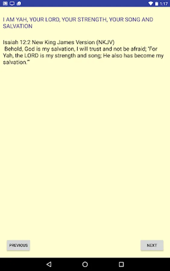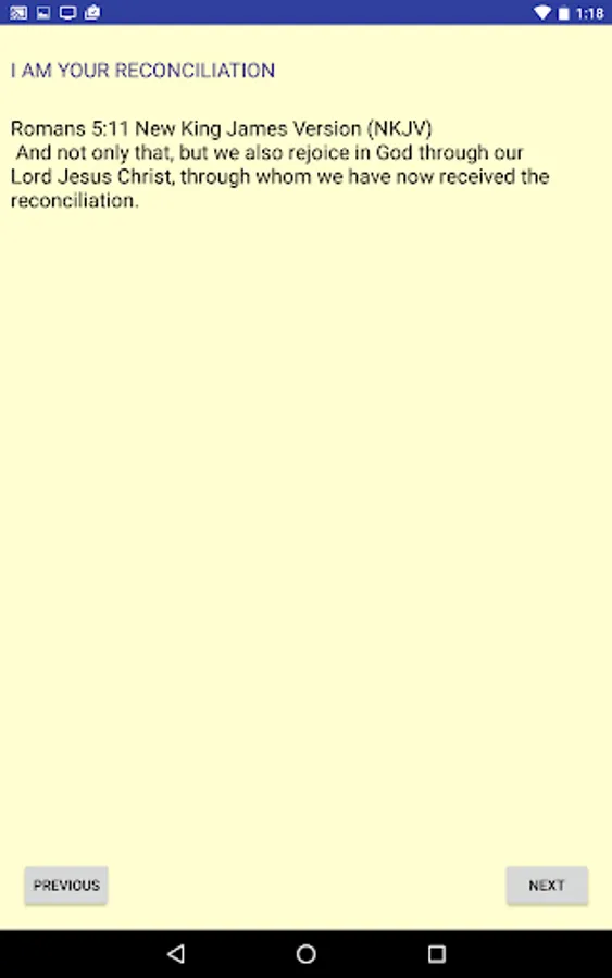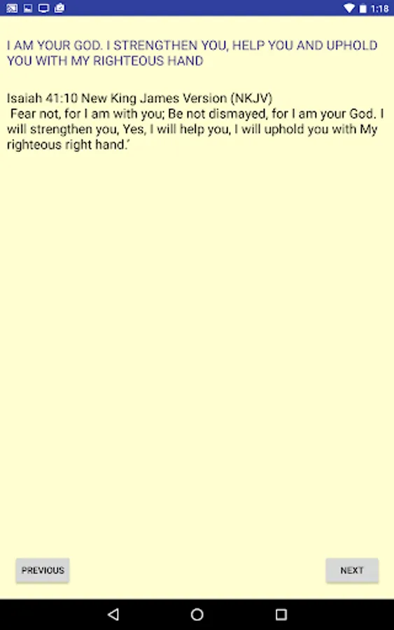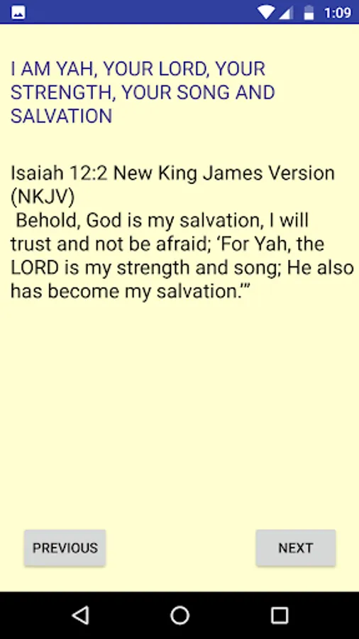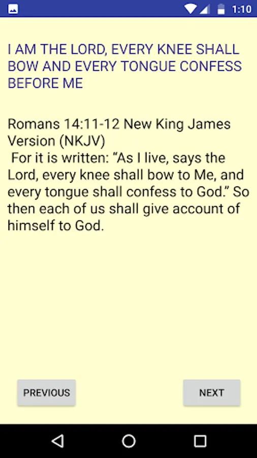 The Bible describes a lot of names for God. This app stores 365 Names of God and it randomly chooses one name and the corresponding scripture. This is a great way to meditate on the names of God and use them in the prayer time. It is also good to memorize some of these names.