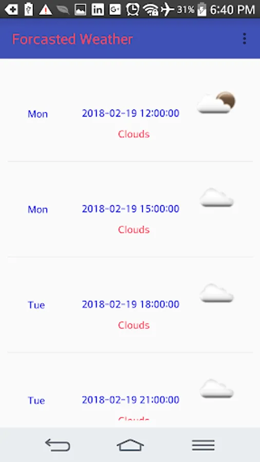 this is a demo app showing use of dagger2, clean architecture, rxjava2. written in Kotlin. it has a google account login and conntects to API's from: https://openweathermap.org/