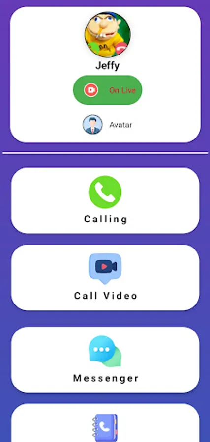 This application helps you to build a funny simulation to prank your family & friends, by making calls with amazing ringtone or generate a fake chat with Jeffy family and surprise all your friends by starting a Live like real one to meet Jeffy on video, and you can make a schedule calls 'timer call', and get be ready to receive a call from Jeffy, So make a good prank for all your friends with your hero Jeffy.