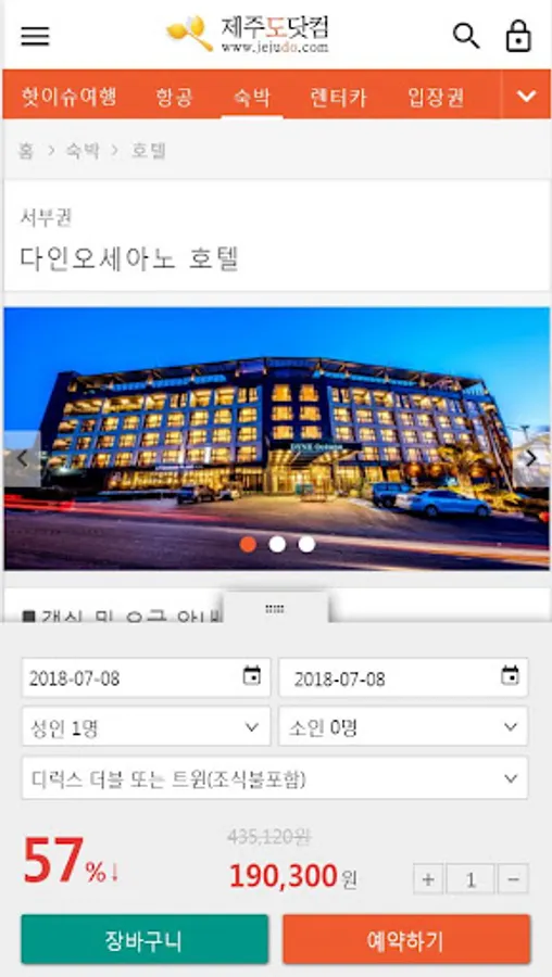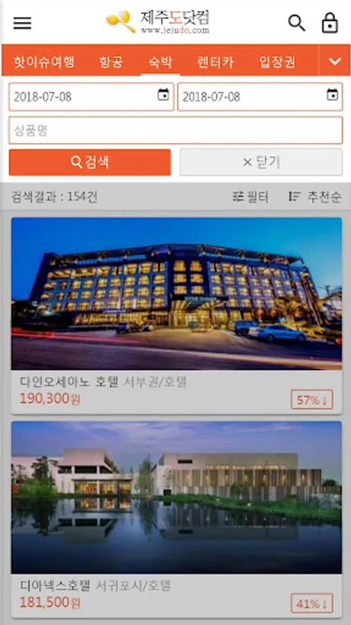 Hotels in Jeju, resorts, pensions, guest houses can be easily booked.