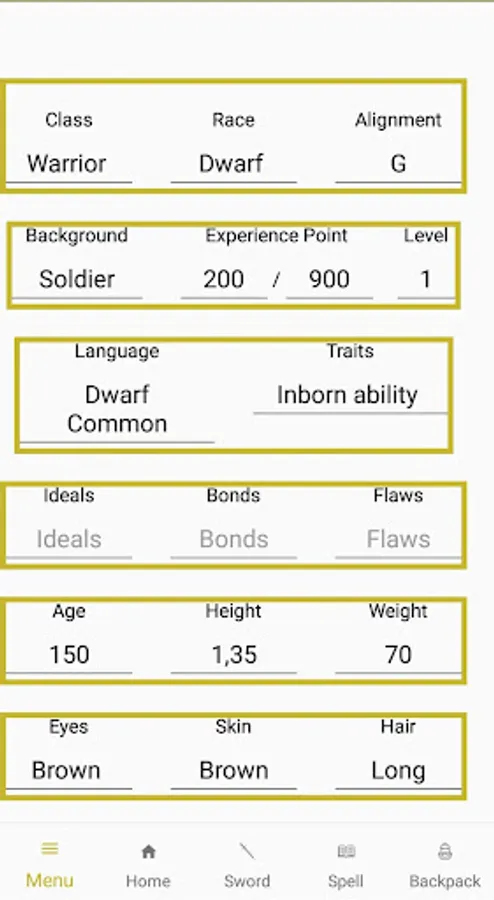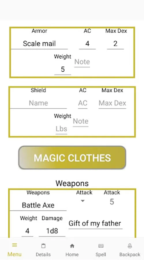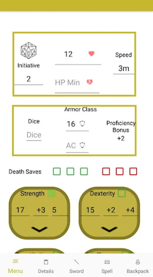 A character sheet for the famous table game dnd 5e. It is a simple character sheet almost completely automatic, the easy way to create and play with you character.