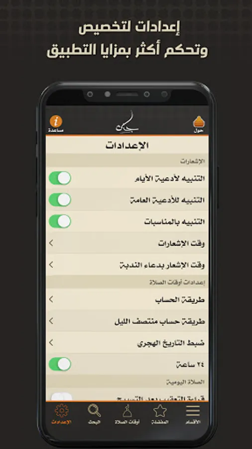 A special section for events divided according to the Hijri months, with the alerts feature