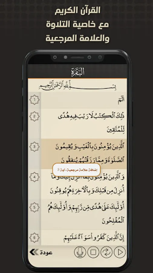 A special section for the Holy Quran with recitation, bookmark preservation, and reciter selection