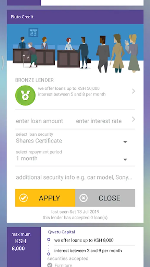 - Select a lender of choice. On clicking the lender box, it will unfold