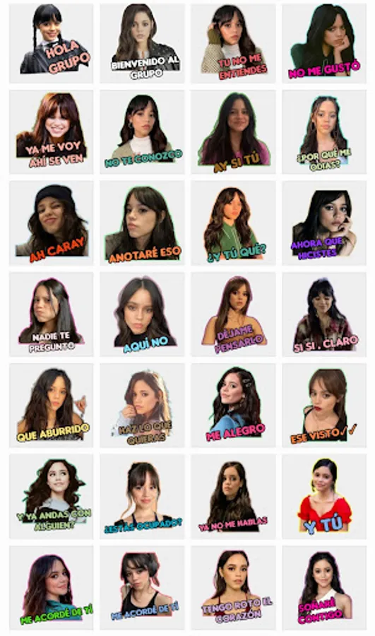 Jenna Ortega Stickers is a free application, in which you can use to talk in a more fun way in your chats or groups of friends, they have fun and happy phrases.