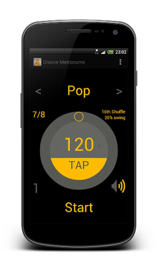 The virtual drum machine lets you play all the built in grooves, in any time signature and tempo you dial in. With all the functionality you can expect from an advanced metronome, this android app also gives you fine control over the swing level.