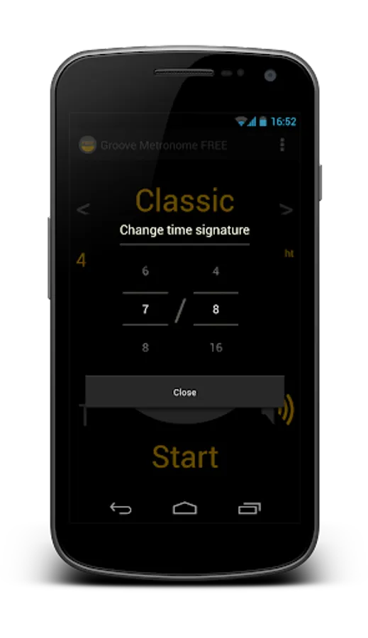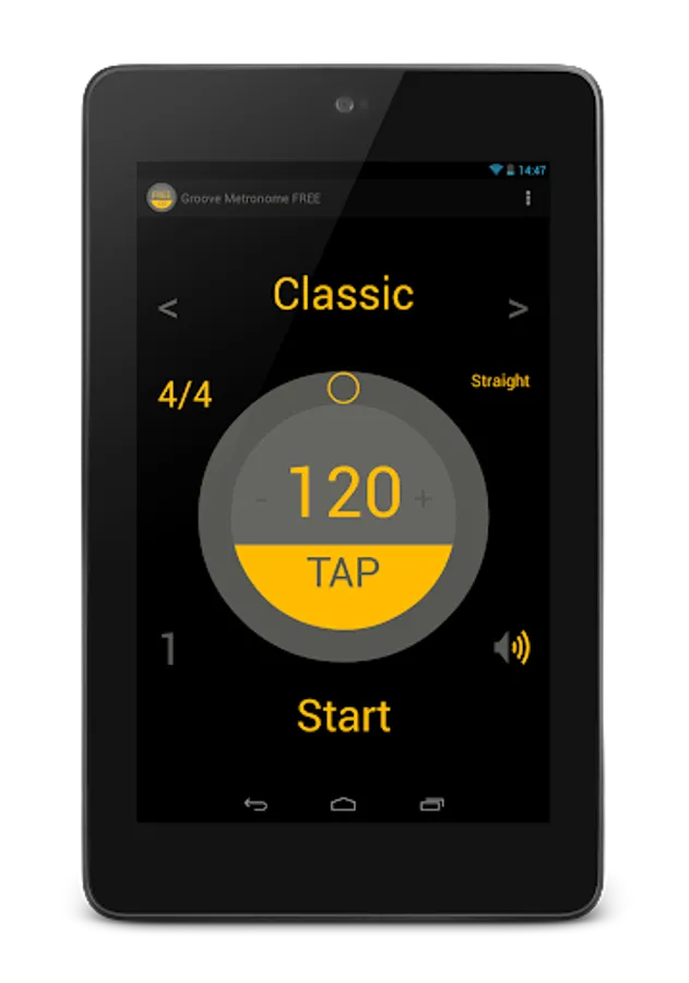 The full version of Groove Metronome offers, as the name implies, also the option to add pre-loaded grooves to any time signature or shuffle feels. The free version only has one groove enabled.