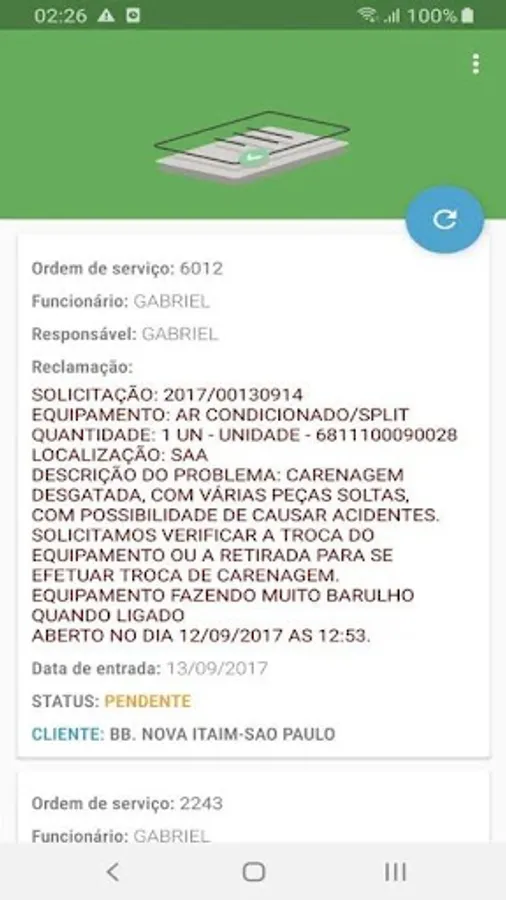 Application responsible for service order management, communicating with the rear of the company, allows greater control of the application's user employees, such as location, operational management and details throughout the life cycle of the Service Order.