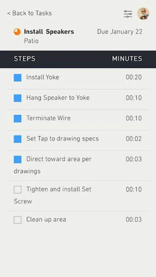 Using their phones, Field Techs can access all of the projects for which they've been assigned tasks. They can see the list of tasks, then check off the steps within those tasks.