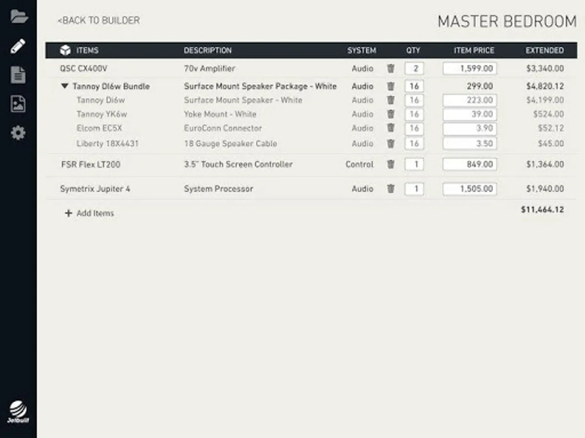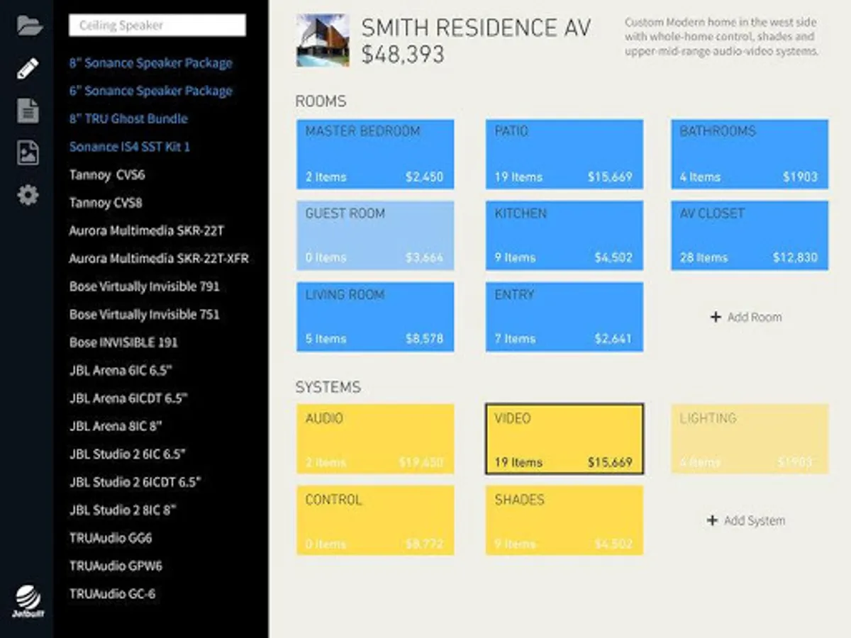 With your tablet device, JetbuiltGO is the ideal tool to quote your commercial and residential AV, IT, and Security projects side-by-side with your client. Working as a site companion to our web application, your team at the office can interact in real time with a quote you are populating in the field.