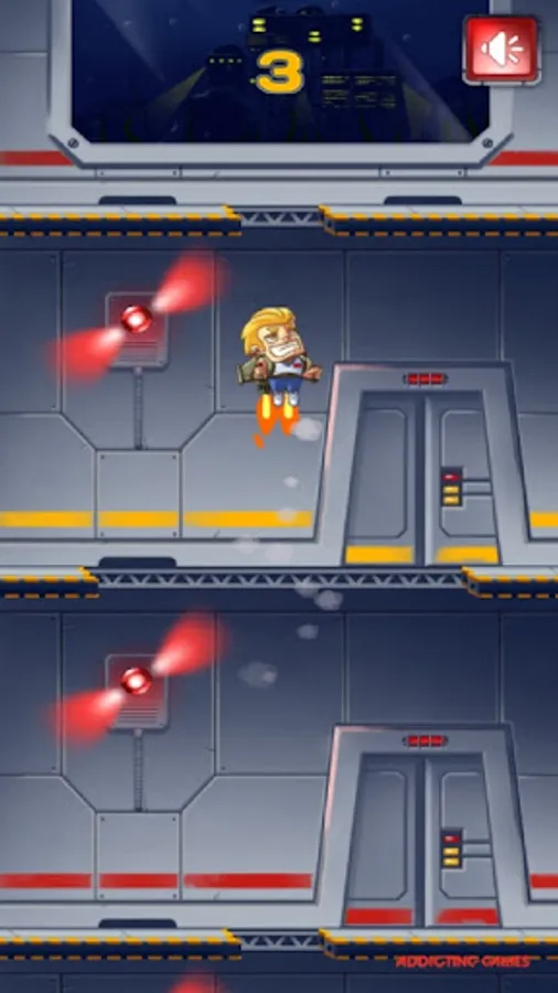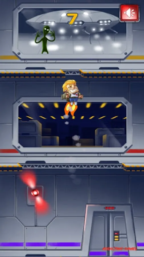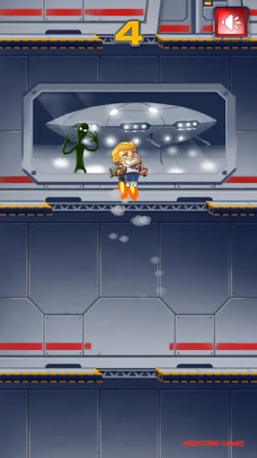 Your mission, if you choose to accept it, is to escape the facility with only a jetpack and a tap. How many levels can you rocket up before getting thwarted? You just knew that those scientists were up to something fishy in this Jetpack Escape game. You snuck into their lab to find out what it was, but you were definitely not prepared for what happened next. The scientists are experimenting on aliens and creating deadly weapons. Oh no, they found you. You grab a nearby jetpack and attempt to shoot out of the roof while alarms go off like crazy. Man, how many floors are there?