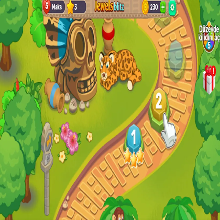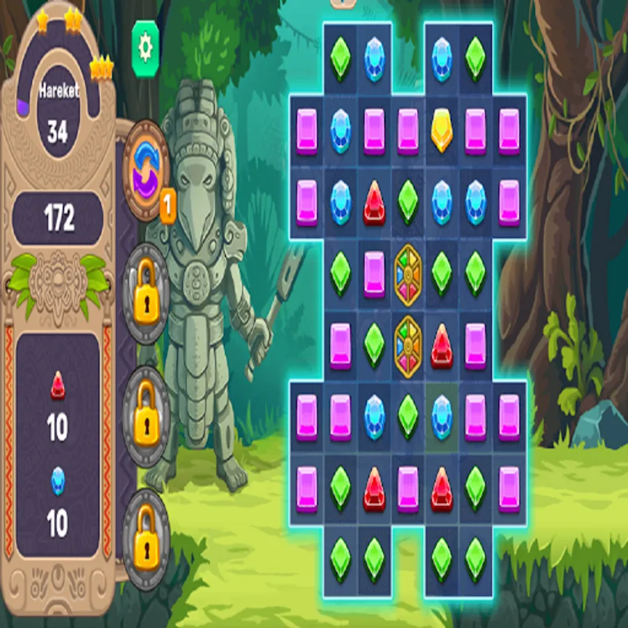 To make matches, you can make two adjacent gems swap places, but only if the swap results in a valid combination. By matching more than three gems at a time, you can unlock bonus items and boosters. Collect stars to open the treasure chests scattered along the level map.
