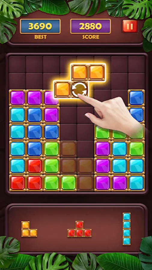 Drag and drop different shapes of gem puzzle blocks into graphic,Relax yourself to fill up lines with classic jewels blocks,Choose better position to place jungle puzzle blocks to eliminate more gems blocks,you will never get bored with this jungle theme gems block puzzle game,Once you start, you will be addictive to make more jewels blast.