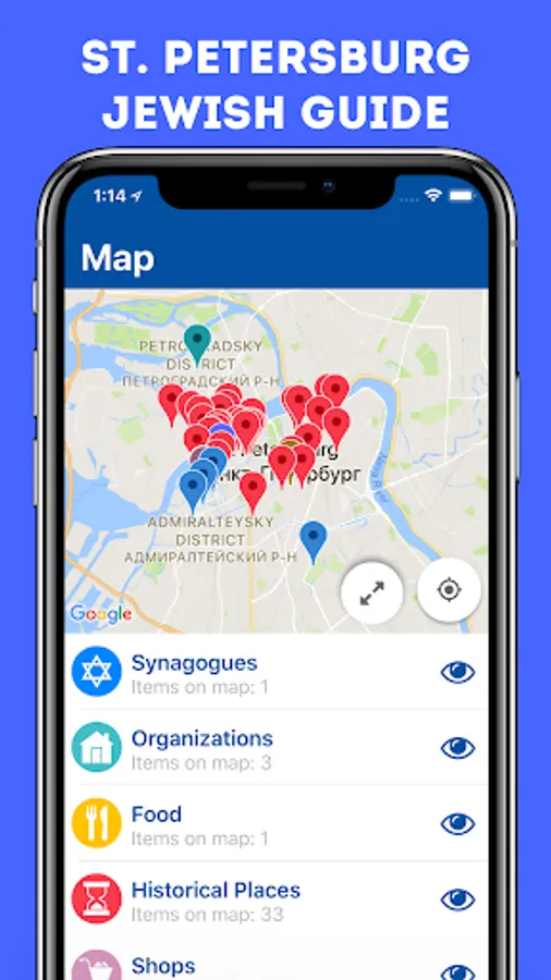 With this mobile app you can find information about jewish places and history of St. Petersburg - one of largest cities in Russia. We collected historical and actual places that represent jewish life and influence to the city. As well as points on map you can navigate with jewish routes on city streets and inside some great museums.