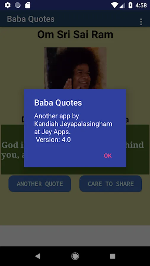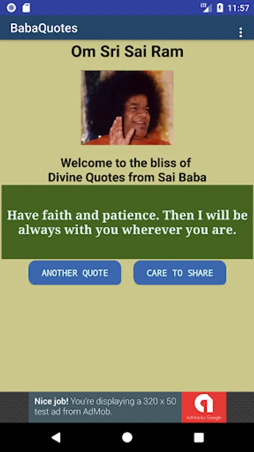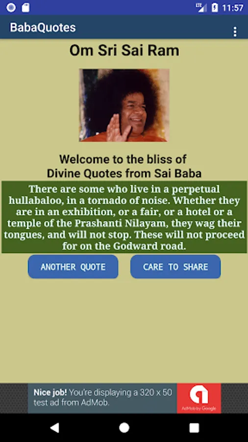 It gives a quote from the collections of Bhagavan Sri Sthaya Sai Baba and Bhagavan Sri Shirdi Sai Baba. They are two spiritual leaders lived in India in the past centuries and have millions of followers all over the world.