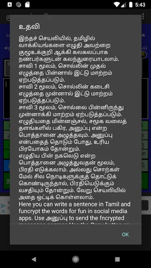A user can write a sentence in Tamil and get it funcrypted by reordering the individual words. The funcrypted sentence can be used in communication in the social media.