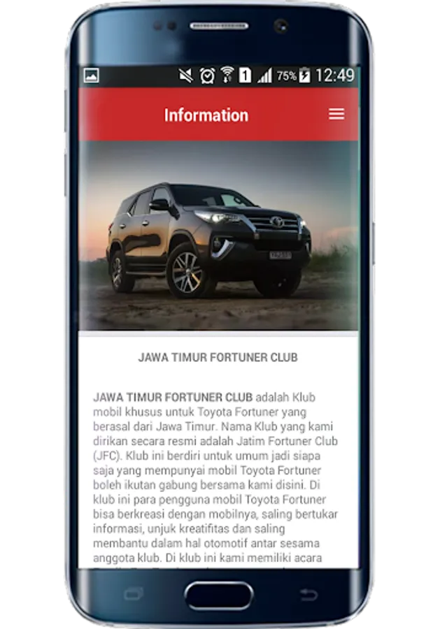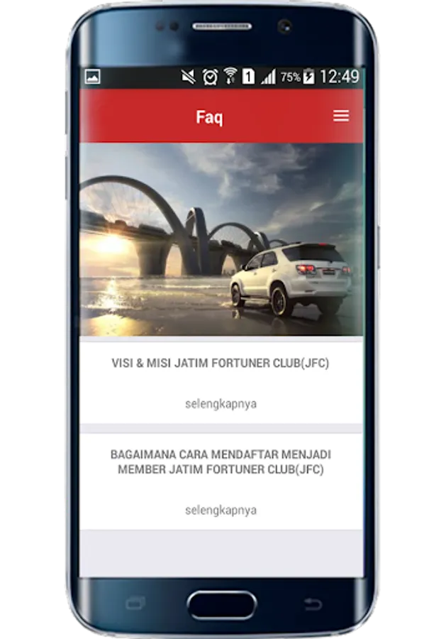 This mobile application is a form of services that support the vision and mission of JFC. This community not only discussed the automotive, but also a lot of activities realized by involving the family in all its activities, whether it bhaksos, travel / tourism promotion, education etc.