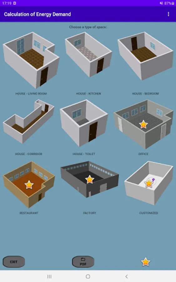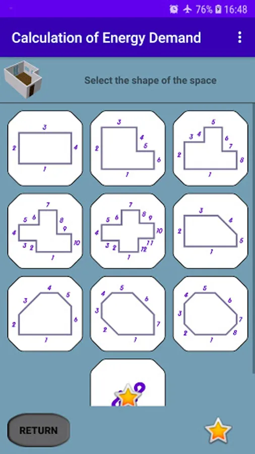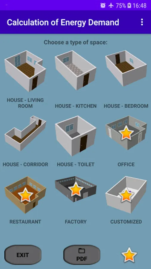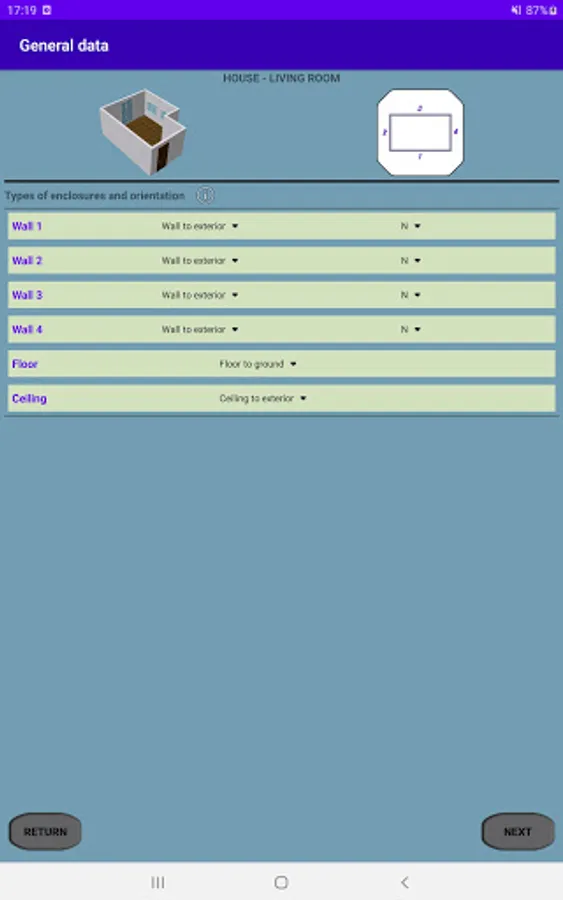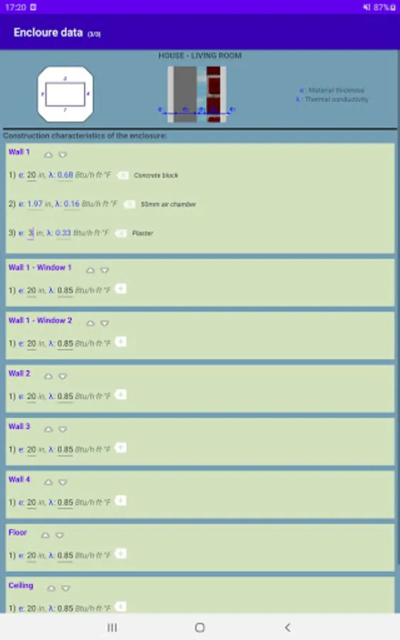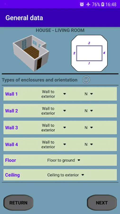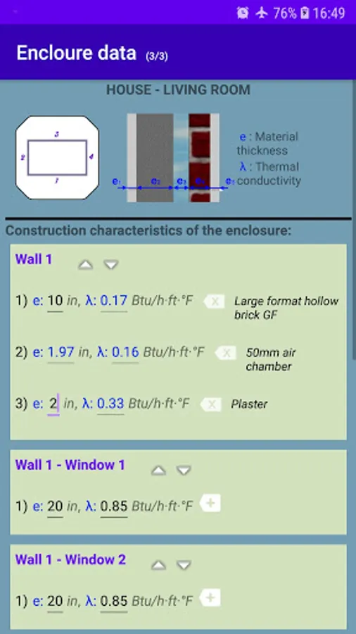 Application for calculating the energy needs of spaces in homes. The following are taken into consideration: