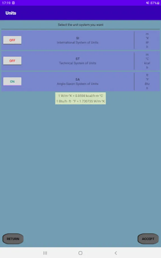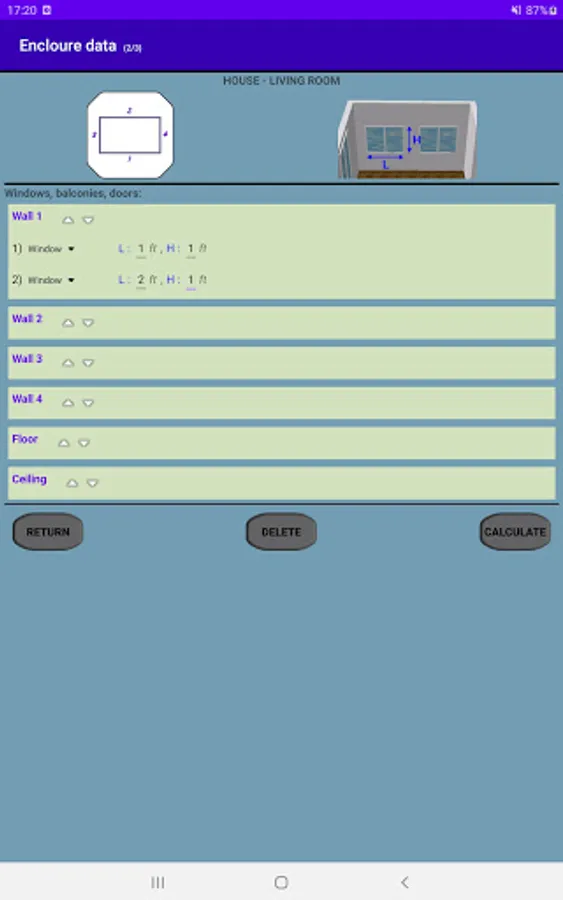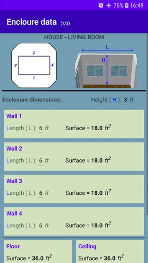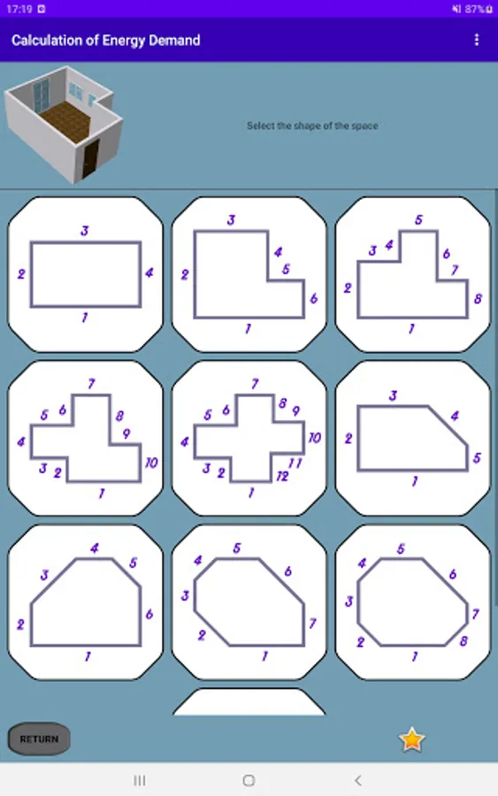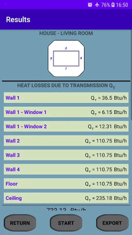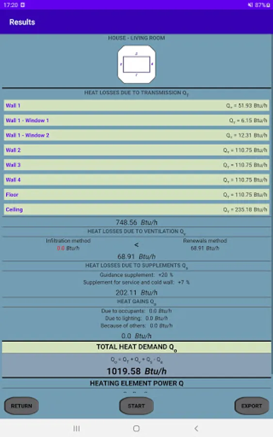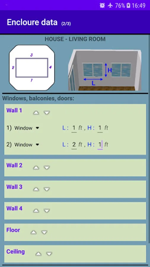 Application for calculating the energy needs of spaces in homes. The following are taken into consideration: