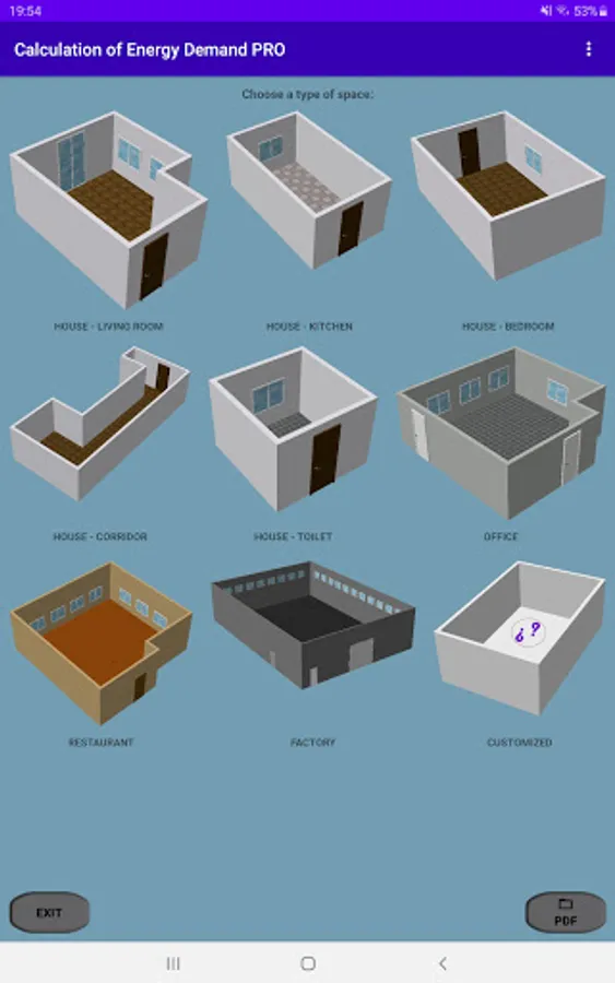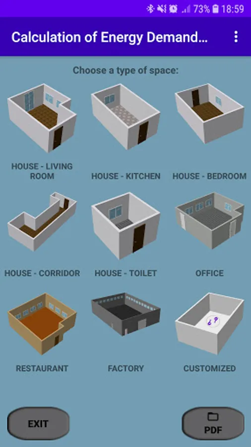 Application for calculating the energy needs of spaces in homes and other buildings. The following are taken into consideration: