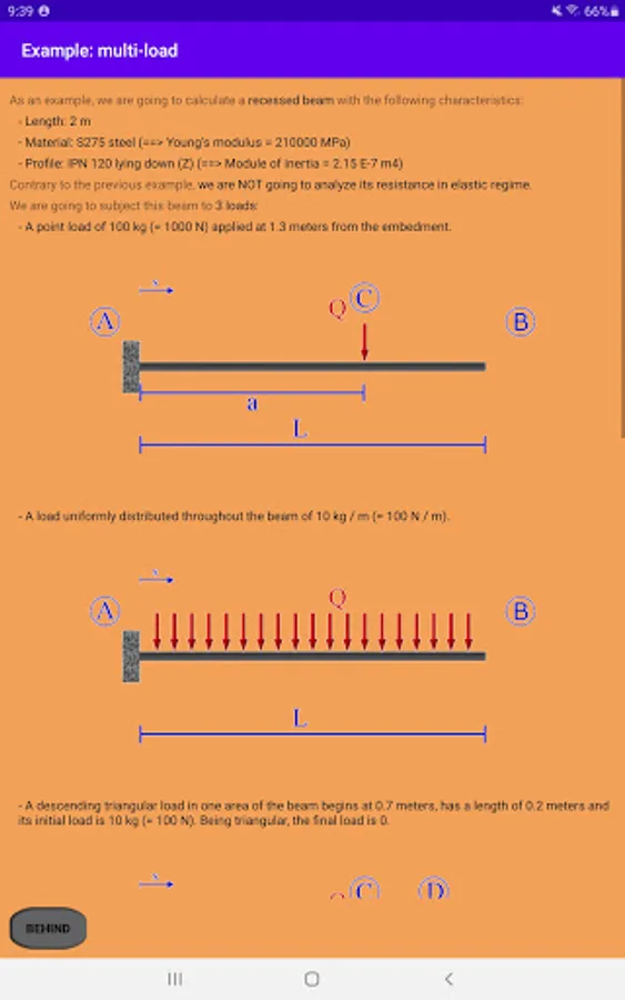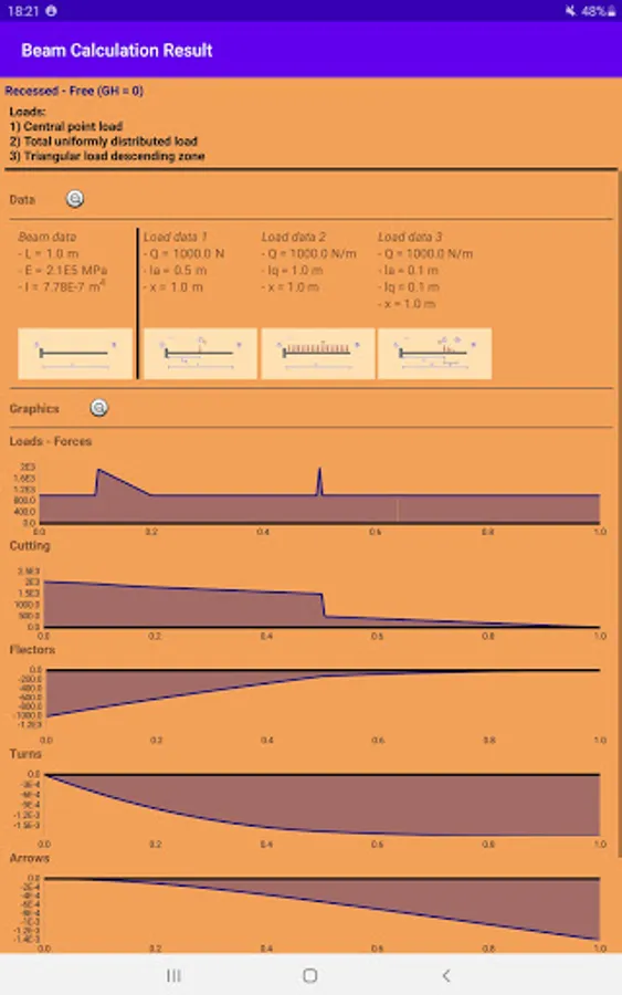 - Supports point loads, evenly distributed loads, triangular loads, trapezoidal loads and moments. All of them in any position and quantity.