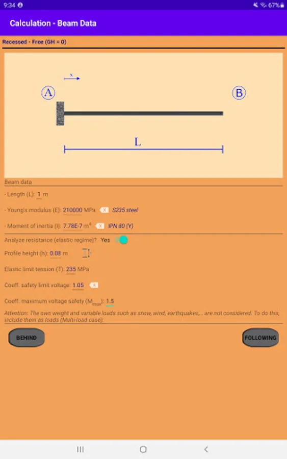 - It allows the verification of the elastic regime indicating whether it enters into breakage or plasticity or the index of use of the beam in those conditions.