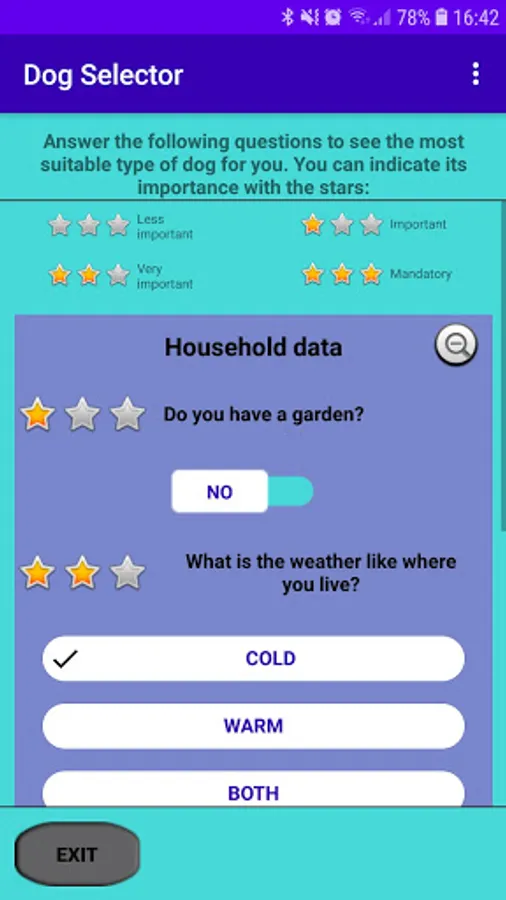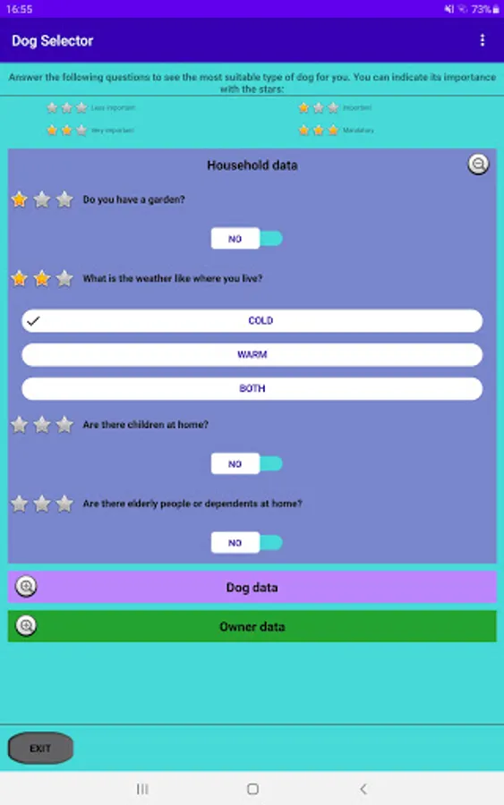 Application that selects the dog breeds that best suit your tastes and needs. The following are taken into consideration: