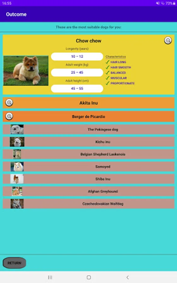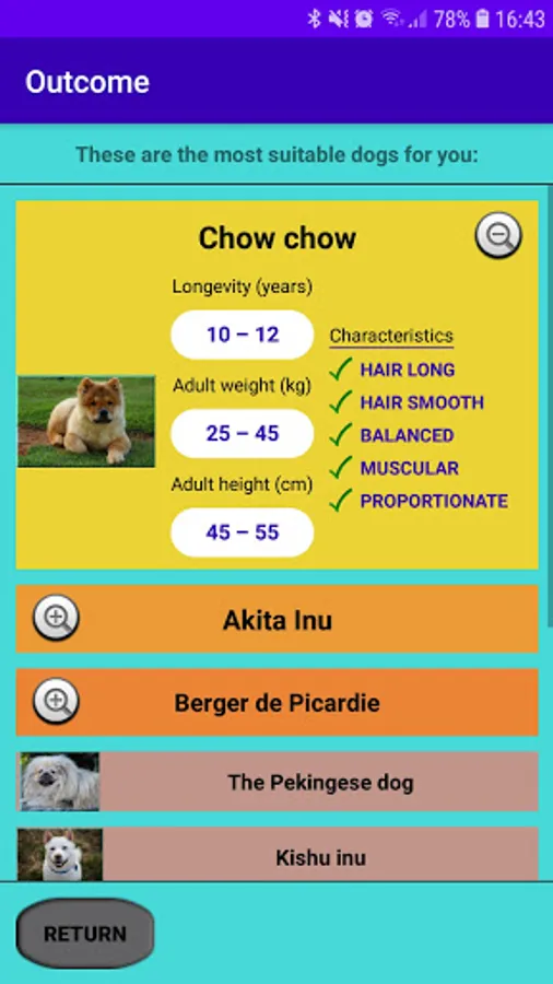 * Results in the 10 most related breeds according to the data entered, with the first 3 in detail.