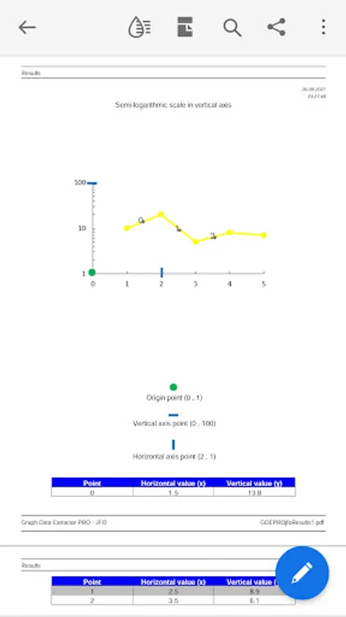 Application to obtain the values or data of the points of a graph that is in the form of an image saved on your mobile.