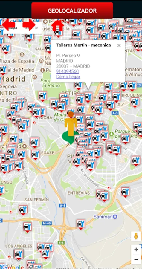 Geolocation of: Batteries, Second Hand Purchase / Sale, Scrap yards, Cranes, ITV, Windows, Tires, Spare Parts, Sheet Metal and Painting Workshops, Electricity, Mechanics, Civil Guard, etc. closest to an address, ZIP code, coordinates, etc. It can indicate distance (radius) and direction.