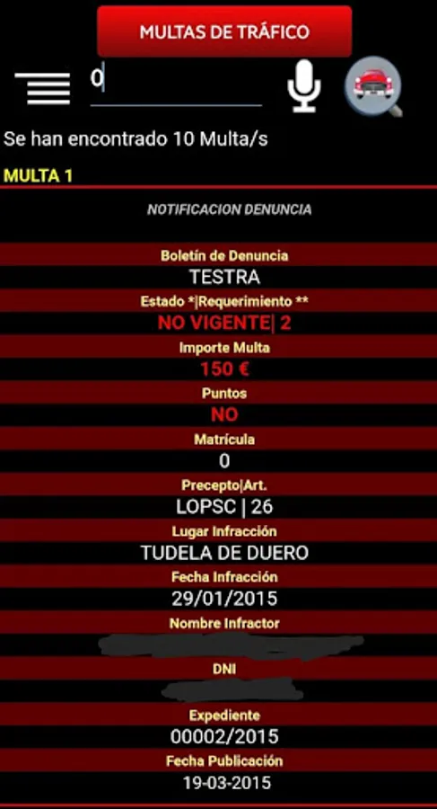 -Search in the official gazettes, from the registration, NIF, CIF, etc., the existence of pending traffic fines.