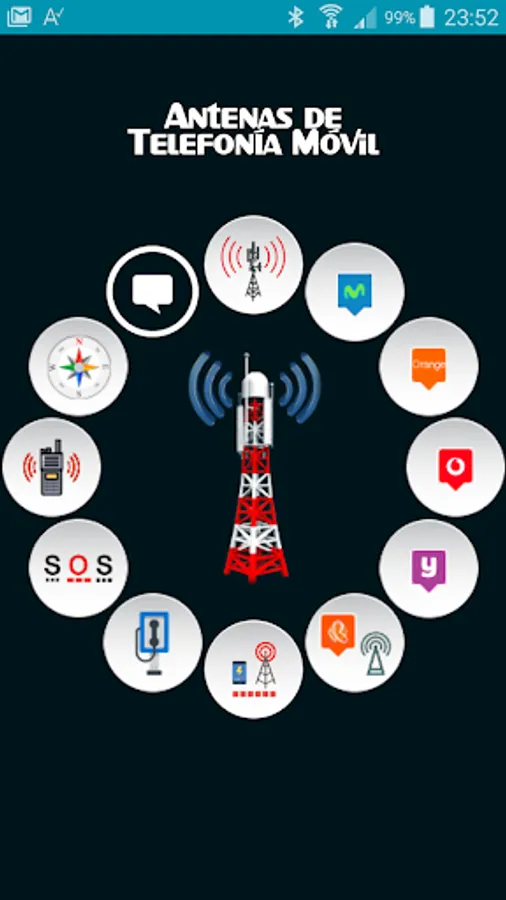 Maps with the situation and characteristics of the antennas (stations) for mobile of all mobile telephony providers: MOVISTAR; VODAFONE, ORAGE, YOIGO, EUSKALTEL, etc.
