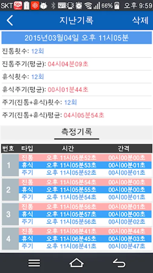 3. If the information repeatedly over the average of the pain cycle is measured in the middle of the app.