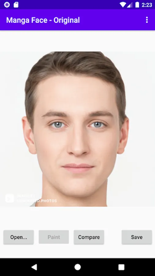 1) Press “Open” to load the image from the photo gallery. You will see the faces on the photo marked with red rectangles.